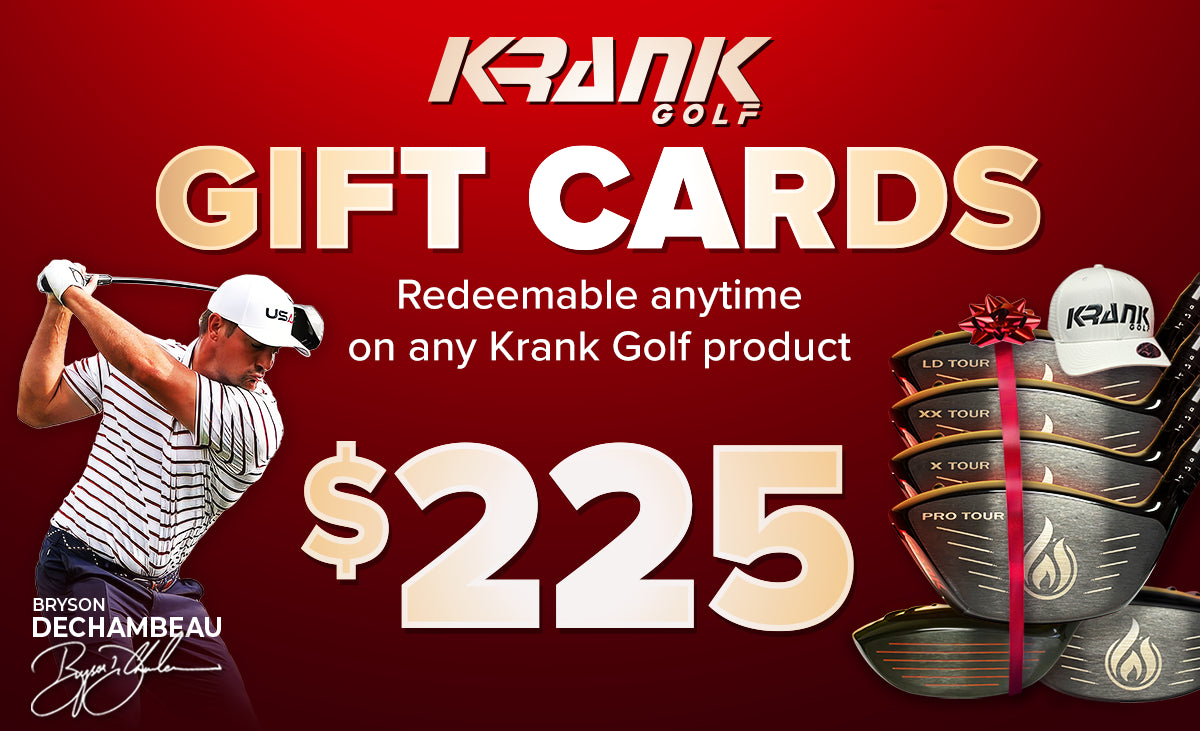 Krank Golf Gift Cards can be used toward any Krank Product including Formula FIRE TOUR drivers, FIRE Fairway Woods, or our NEW Product Bundles. Perfect for last-minute gifts, allowing golfers to choose the exact club built for their swing. Gift cards applied toward a driver or fairway wood purchase, include complimentary custom fitting with one of our Krank Custom Fitters. Instant delivery. Redeem anytime.